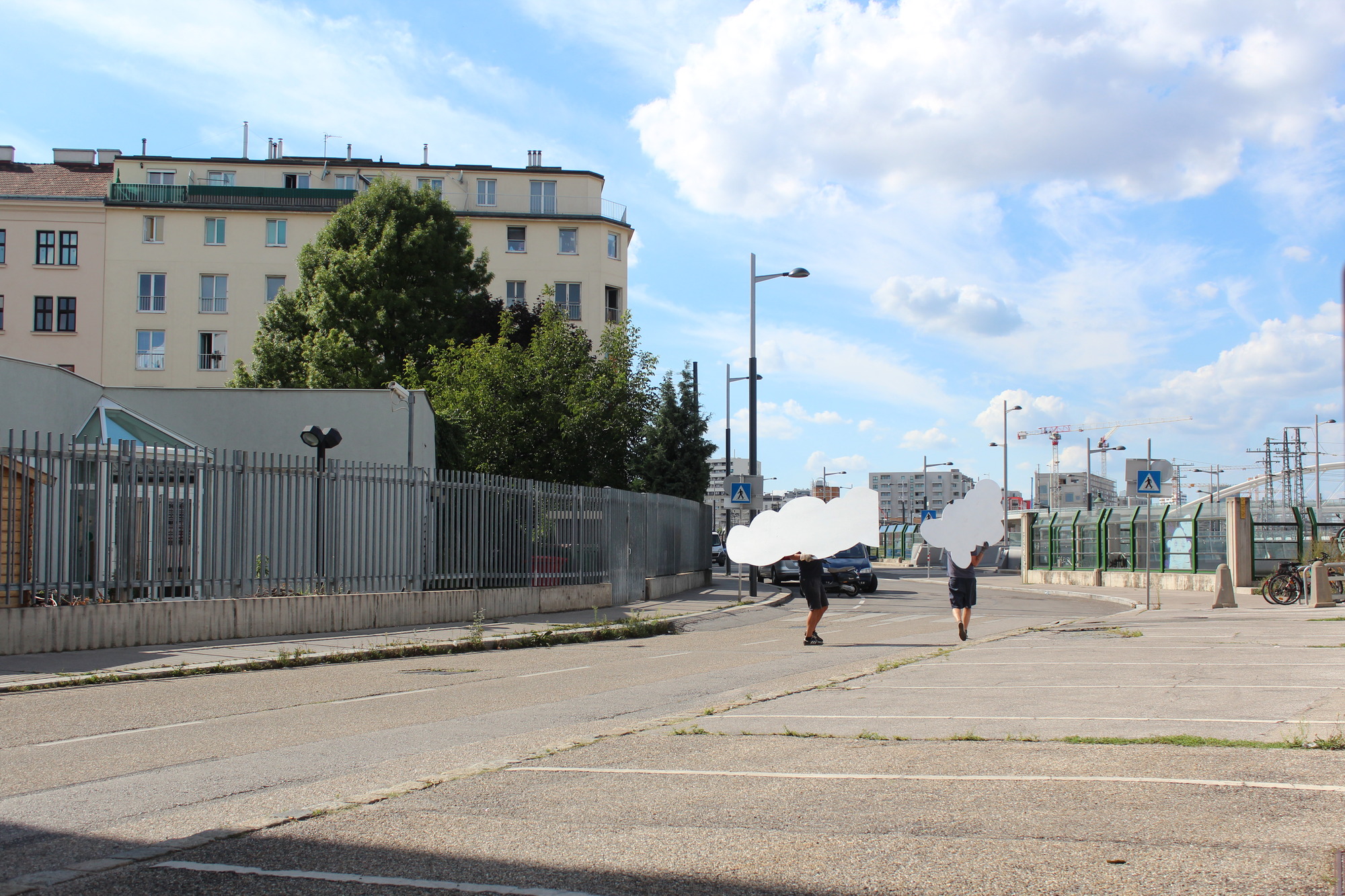 Der “fliegende Teppich” ist eine poetische und zugleich ironische Installation, die das Spannungsfeld zwischen der Inbesitznahme des Straßenraums durch den motorisierten Individualverkehr, dringend benötigter Begrünungsmaßnahmen und der potentiellen Aneignung des öffentlichen Raums durch die in Wien lebenden Menschen in den Blick nimmt. Als schwebendes Objekt in einer Parklücke spielt der Teppich auf das sagenhafte Motiv an, welches Raum für phantastische Reisen in unbekannte Gefilde ermöglicht und zugleich Raum für phantasievolle Interpretationen zukünftiger Mobilitätsformen lässt. Der Teppich steht symbolisch für Häuslichkeit, Wohnlichkeit und Innerlichkeit und verweist so auf den zunehmenden Rückzug ins Private. Zugleich bedeutet die Inbesitznahme eines Parkplatzes im vom motorisierten Individualverkehr dominierten Favoriten nach wievor eine Provokation die die Gemüter hochgehen lässt. Der fliegende Teppich funktioniert auch als Möbelstück und ist offen für Aneignung. Es ist möglich und erwünscht, dass man auf dem begrünten Teppich Platz nimmt und verweilt. Das bietet wiederum Anlass zu einem Streitgespräch, welches im besten Fall auf dem weichen Rasen bei einer Tasse Tee fortgeführt wird.